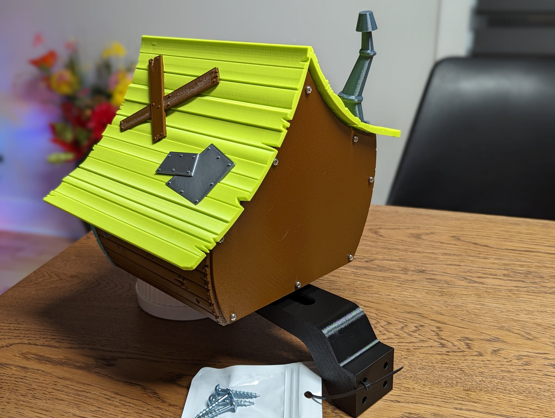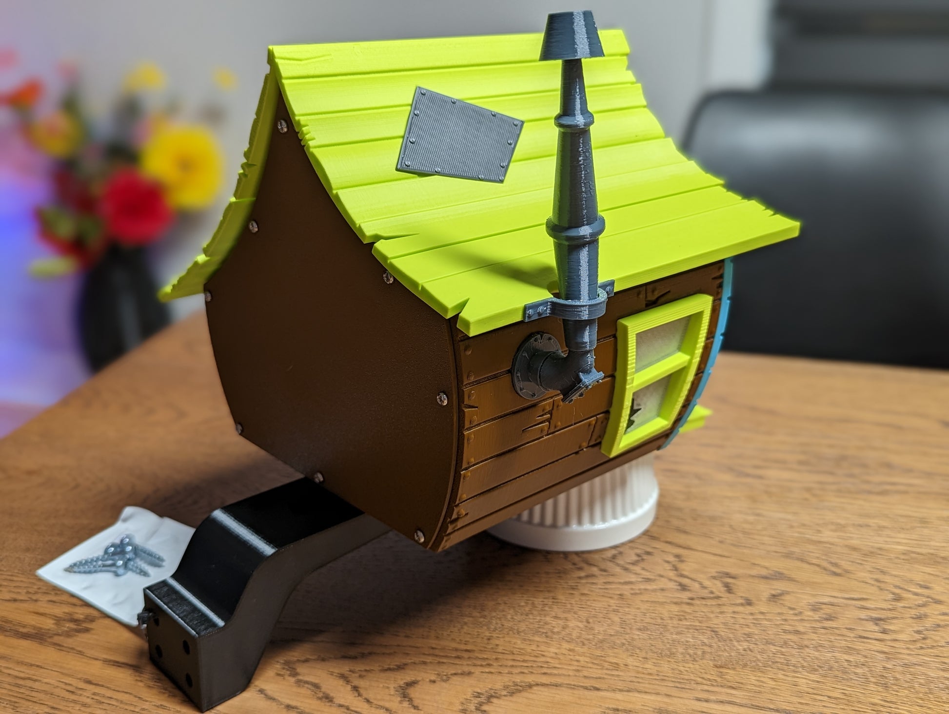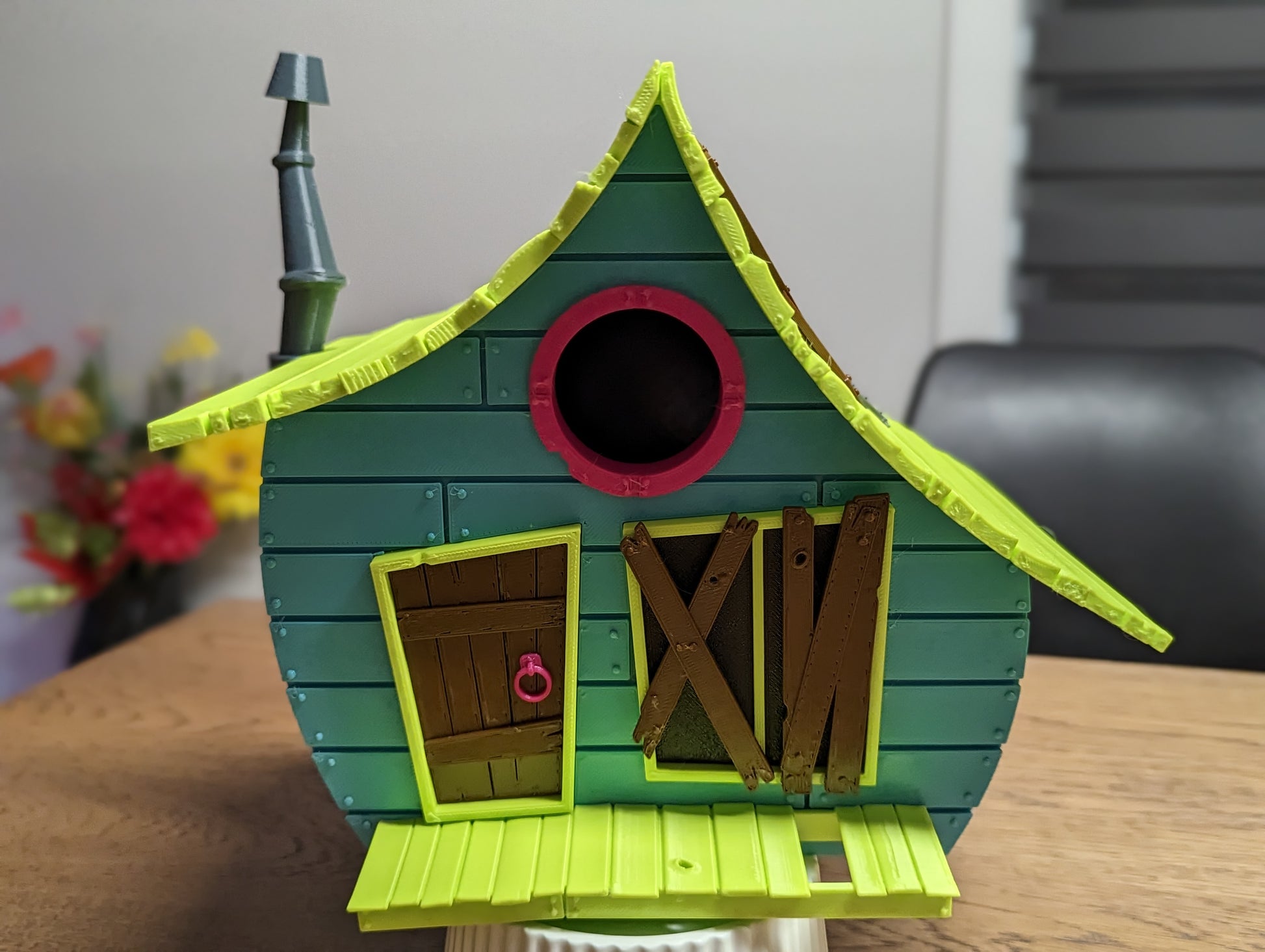 Inject charm, color, and a touch of fantasy into your backyard with The Toon Shack birdhouse. Handmade in PETG by Norexa Studio, it’s built to survive the seasons while making a bold, playful statement. With its wobbly walls, crooked chimney, and exaggerated proportions, it looks like it popped out of an animated film – but it’s 100% real and bird-ready.